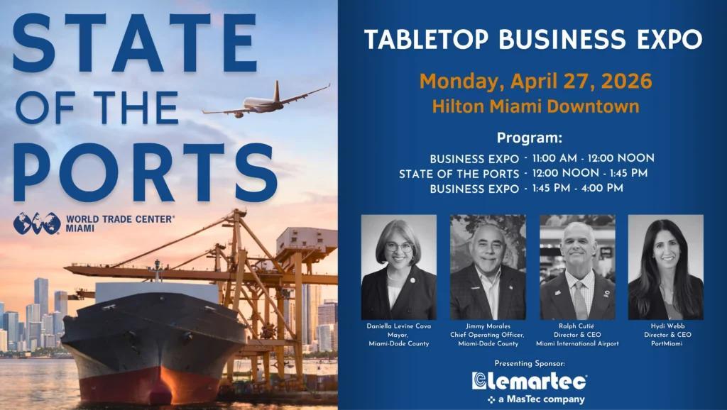 The World Trade Center Miami (WTCM) is South Florida’s premier international trade organization, serving as a catalyst for global commerce and economic expansion since 1971. Established by civic and business leaders committed to shaping Miami into an international business capital, WTCM has played a defining role in advancing the region’s position as the Gateway to the Americas.