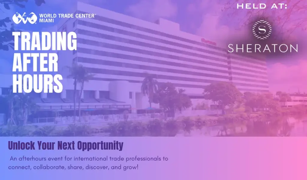 Join us for an exclusive Trading After Hours Networking Reception hosted by the World Trade Center Miami. This event provides a unique opportunity for international trade professionals to connect, collaborate, and explore new trade opportunities in global markets.