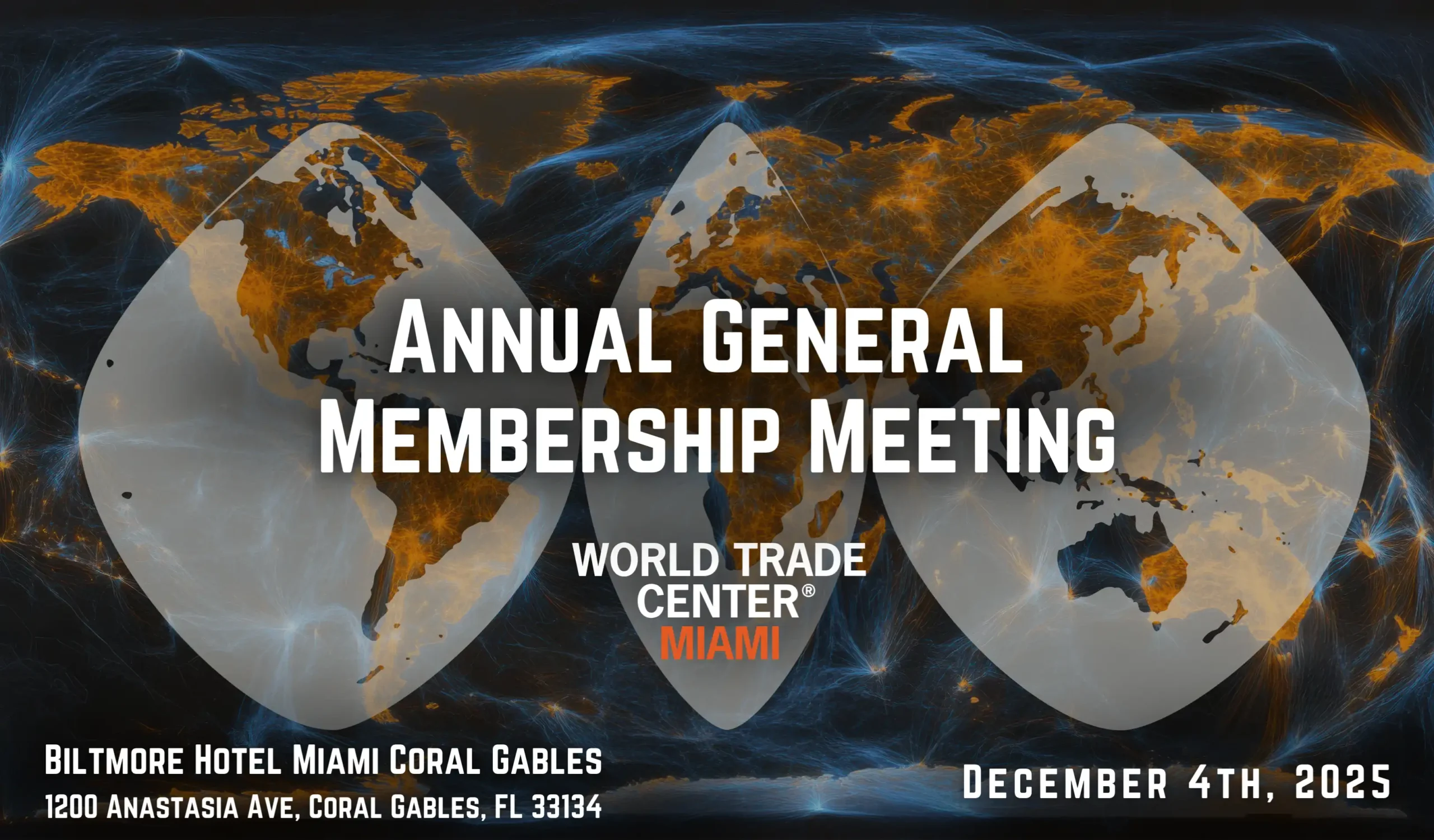 The Biltmore Hotel Country Club Ballroom, 1200 Anastasia Ave, Coral Gables, FloridaThe World Trade Center Miami Annual General Membership Meeting will convene on Thursday, December 4, 2025, at the iconic Biltmore Hotel in Coral Gables, from 4:30 PM – 6:00 PM, preceding the International Achievement & International Hall of Fame Awards. This annual gathering is an opportunity for members to reflect on our shared successes, gain […]