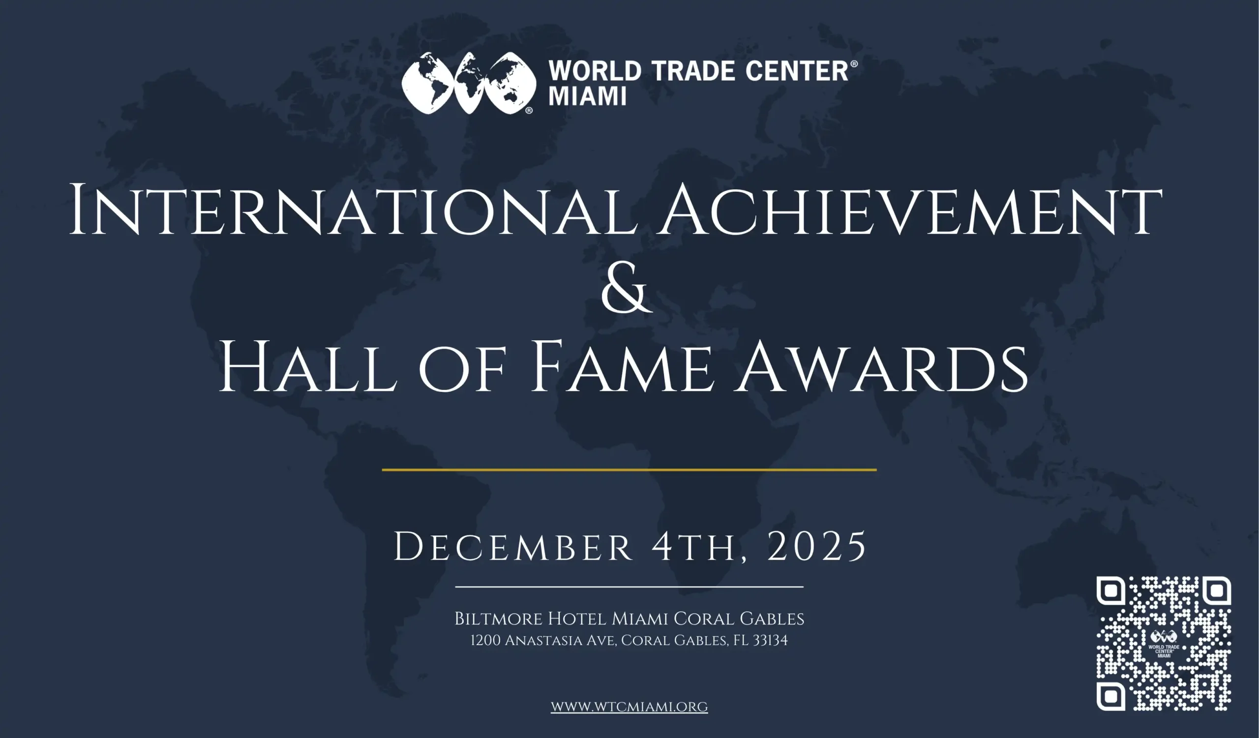 The Biltmore Hotel Country Club Ballroom, 1200 Anastasia Ave, Coral Gables, FloridaThe World Trade Center Miami’s signature International Achievement & International Hall of Fame Awards returns on Thursday, December 4, 2025, at the historic Biltmore Hotel in Coral Gables, from 6:00 PM – 8:00 PM. This prestigious annual event honors outstanding individuals whose vision, leadership, and contributions have made a lasting impact on international trade and […]